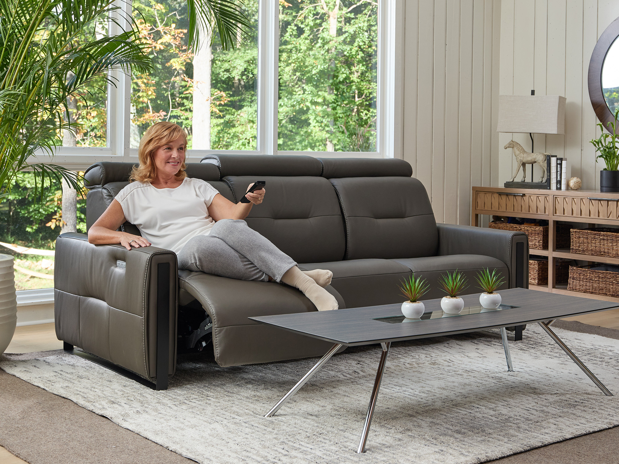 The Fjords Monte Carlo is as relaxing as it is beautiful. It features the design, tailoring and commitment to detail that you have come to expect from Fjords furniture. The sofa is constructed as a modular system. Each seat has the option of power. The power seats offer two motors, one to operate the concealed footrest and backrest and the other to operate the headrest cushion for additional comfort. Controls for the two operations are located on the seat. For those who do not want power on the middle seat, a stationary module which features a manually adjustable headrest is available.